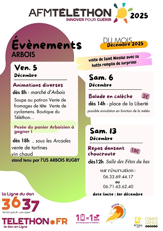 Ook dit jaar doen de stad Arbois en haar verenigingen weer mee aan de Telethon 2025.