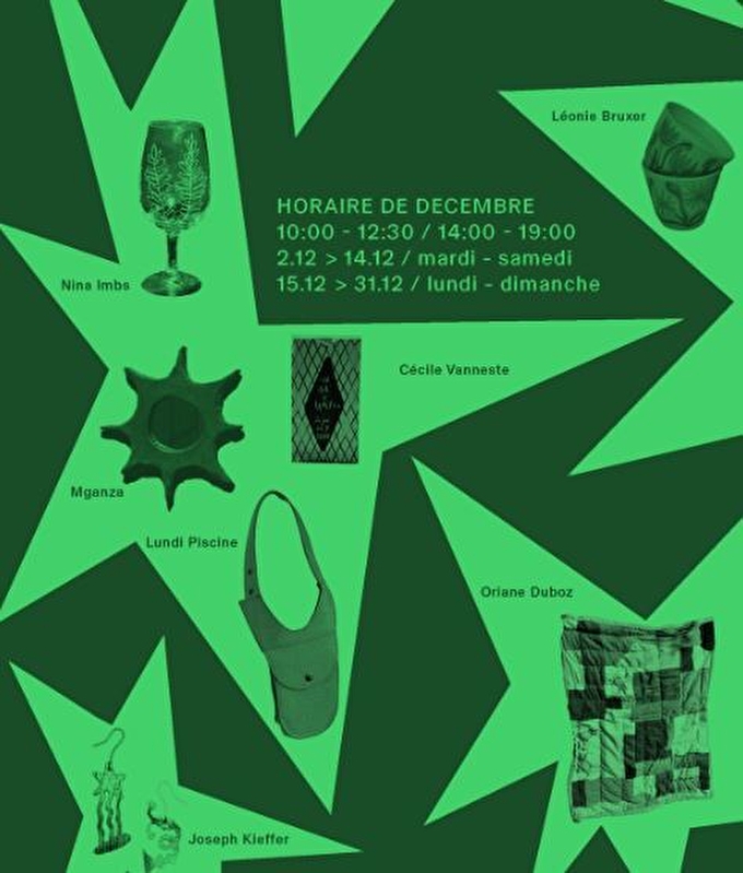 - Mganza @usezles werkt met klei en vezels. Haar keramische werk neemt de vorm aan van series sobere, ruwe en hoekige alledaagse objecten, Poligny.