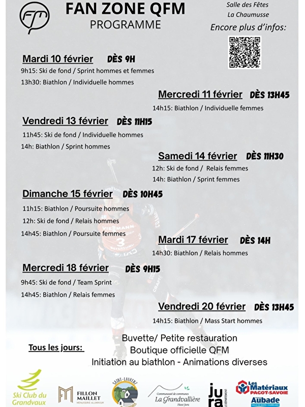 De Grandvaux Skiclub is verheugd om een fanzone te organiseren om Quentin Fillon-Maillet te steunen tijdens de Olympische Spelen in Milaan/Cortina.