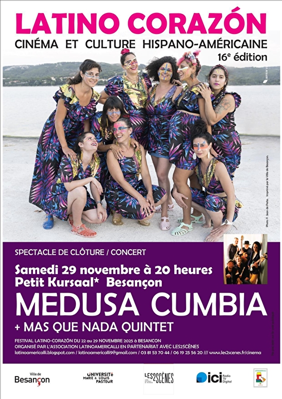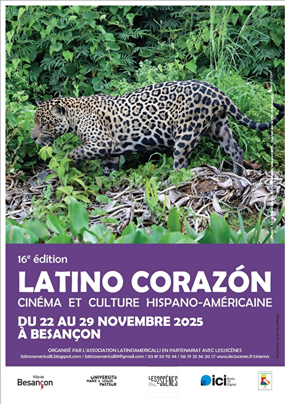 Dit jaar vertonen we 7 recente of toekomstige Latijns-Amerikaanse films, waaronder Diego Céspedes' Chileense 'The Mysterious Gaze of the Pink Flamingo'. Het Latino Corazón festival omvat ook een slotshow op 29 november, die elk jaar een enthousiast publiek trekt. De evenementen van deze dag worden georganiseerd in samenwerking met verenigingen als Conviv Tango, Arco Iris en Haute-Saône Mexique, en er treden zowel lokaal als internationaal bekende artiesten op:
