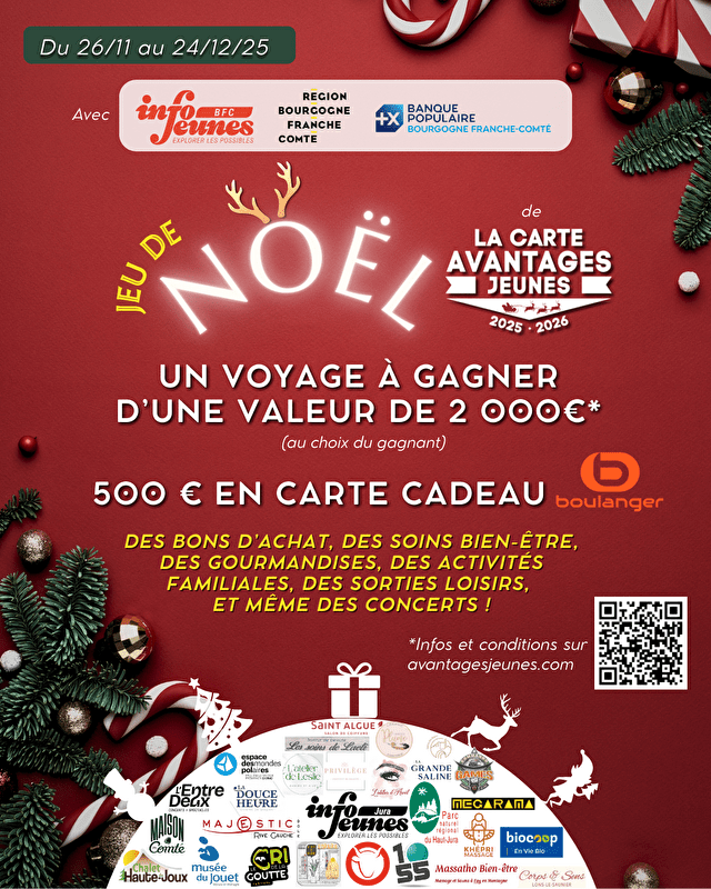 Alle details zijn hier beschikbaar: https://ij39.jeunes-bfc.fr/jeu-de-noel-carte-avantages-jeunes