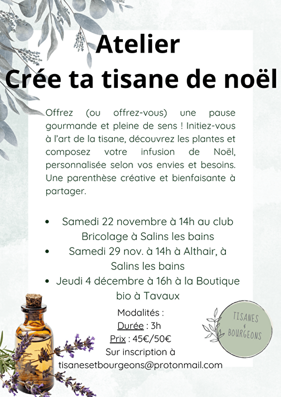 Meer info en inschrijven op tisanesetbourgeons@protonmail.com