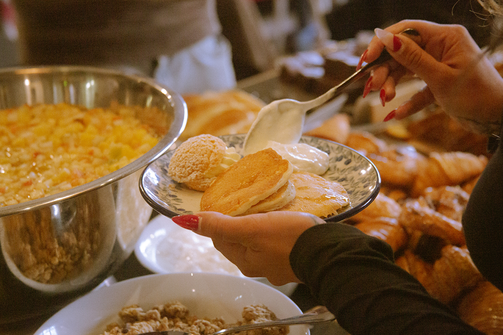 Ons gevarieerde brunchmenu biedt een verleidelijk aanbod van gebak, hartige hapjes, taartjes en nog veel meer, en creëert een warme en gezellige sfeer, perfect om een heerlijk moment te delen met vrienden of familie.