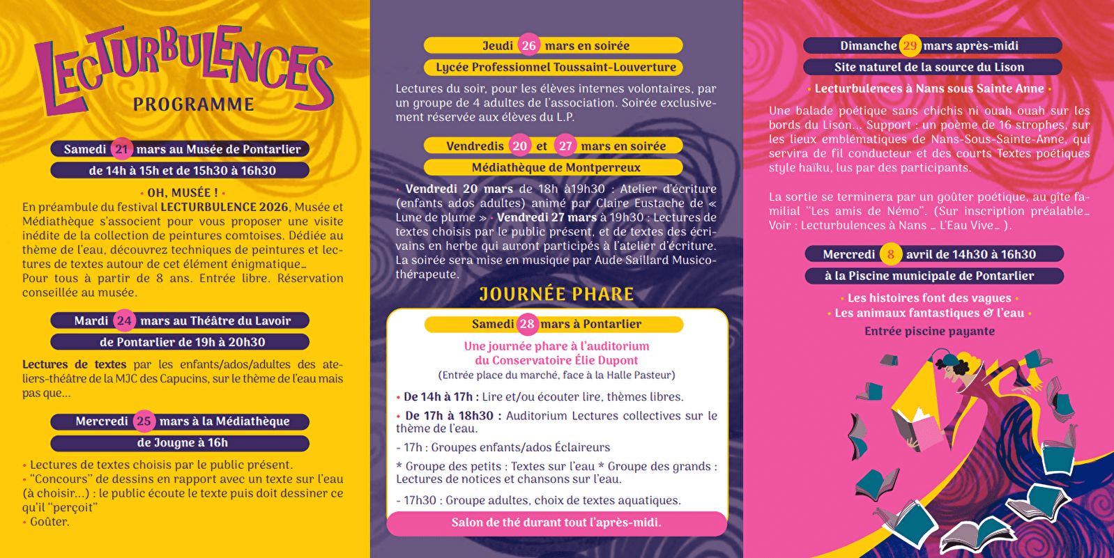 Sinds 2018 is "Lecturbulences" een festival van voorgelezen teksten: lezers kiezen teksten en delen ze met een publiek van vrije luisteraars. Het vindt voornamelijk plaats in Pontarlier en de Haut-Doubs en is gebaseerd op een eenvoudig DNA :