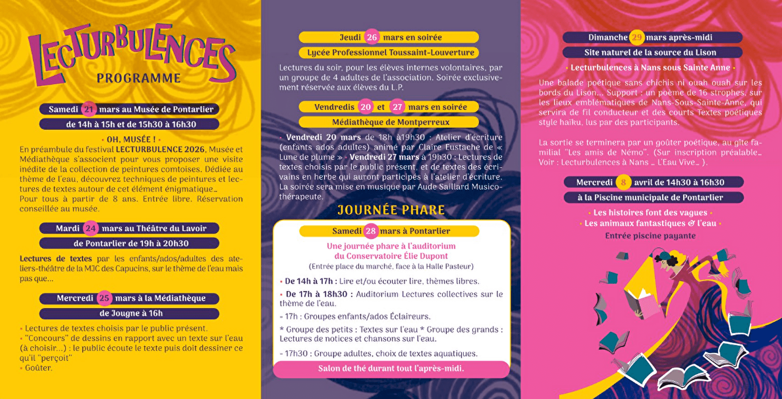 Sinds 2018 is "Lecturbulences" een festival van voorgelezen teksten: lezers kiezen teksten en delen ze met een publiek van vrije luisteraars. Het vindt voornamelijk plaats in Pontarlier en de Haut-Doubs en is gebaseerd op een eenvoudig DNA :