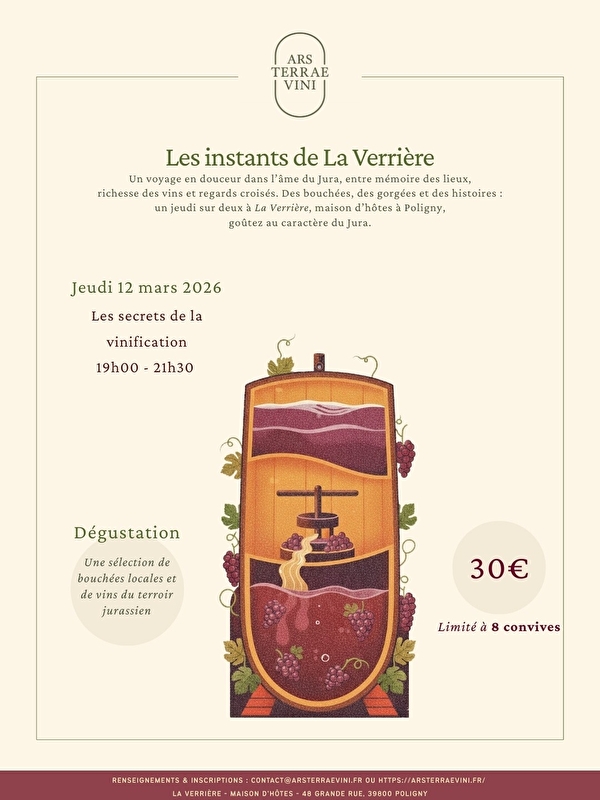 Wij nodigen u graag uit voor een nieuwe editie van Instants de La Verrière, een zintuiglijke reis naar het hart van de Jura. Tussen de herinnering aan plaatsen en de rijkdom van terroirs bieden wij u een tijdloos intermezzo om het unieke karakter van onze streek te proeven.