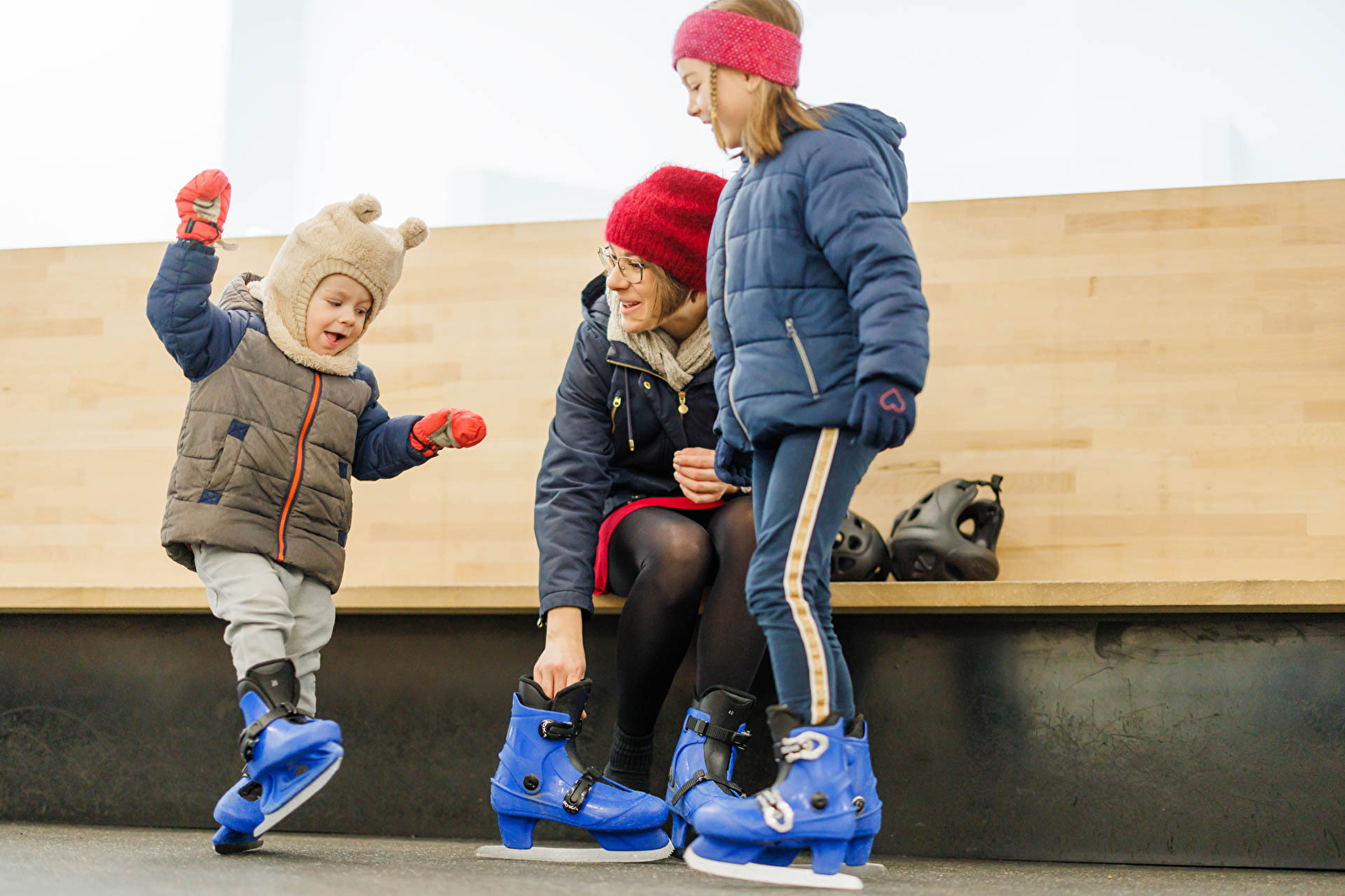 Schaatsen van maat 23 tot 49. Dubbele schaatsen vanaf 2 jaar tot maat 27. Schaatshulpmiddelen kunnen worden ingeleverd met een muntstuk van €2. Handschoenen verplicht voor iedereen.
