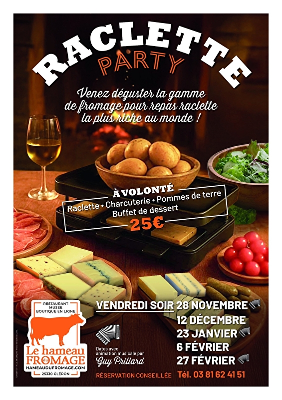 Kom en ontdek ons uitgebreide assortiment raclette kazen in een all-you-can-eat menu! Georganiseerd door Guy Prillard.
