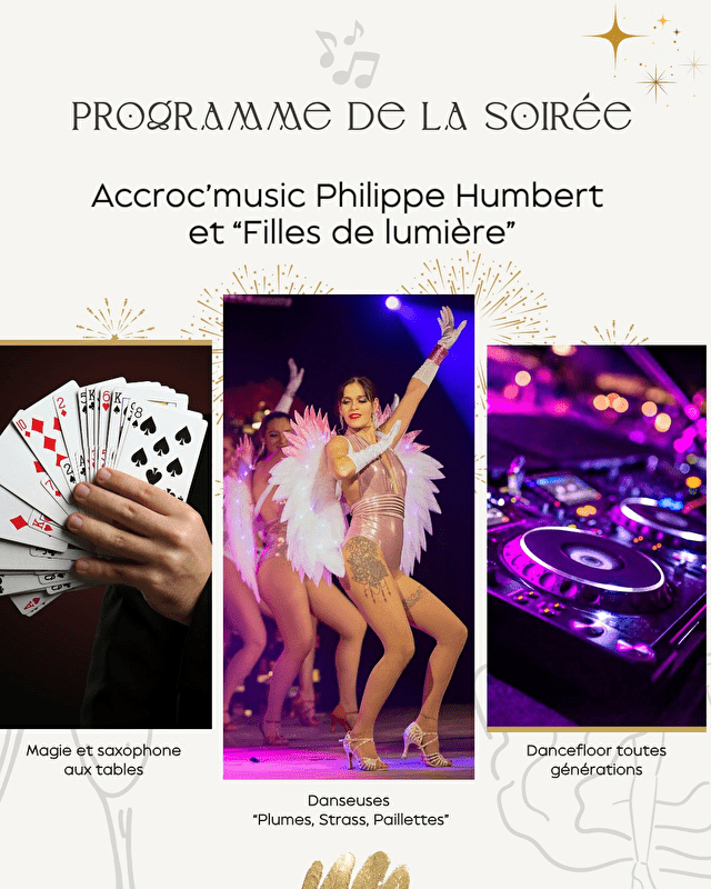 Op het programma: magie en saxofoon aan de tafels, "Plumes, strass, paillettes" dansers en een dansvloer voor alle generaties.