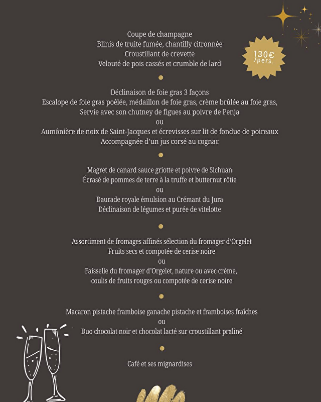 Feest op 31 december vanaf 19.00 uur in restaurant La Valouse in Orgelet.