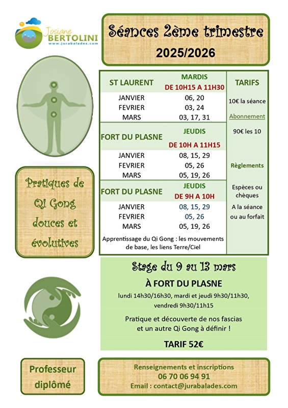 Qi gong sessie met Josiane Bertolini in de Saint-Laurent dojo 2 dinsdagen per maand van 10.15 tot 11.30 uur.