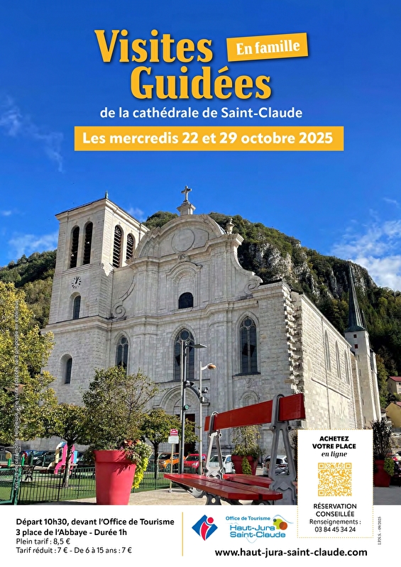 - bij een van onze VVV-kantoren (Lajoux, La Pesse en Saint-Claude).Reserveren aanbevolen, aantal plaatsen beperkt.Duur: 1 uurBeginplaats: 3 place de l'Abbaye 39200 Saint-ClaudeKom 10 minuten voor aanvang van de rondleiding aan.