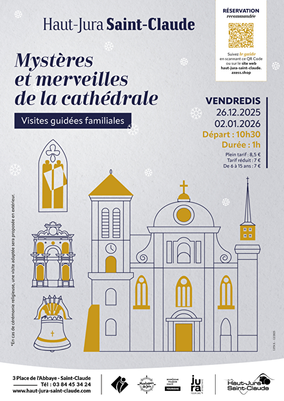 - bij een van onze VVV-kantoren (Lajoux, La Pesse en Saint-Claude), reserveren aanbevolen, aantal plaatsen beperkt. Duur: 1 uur Vertrekpunt: 3 place de l'Abbaye 39200 Saint-Claude. Gelieve 10 minuten voor het begin van de rondleiding aanwezig te zijn.