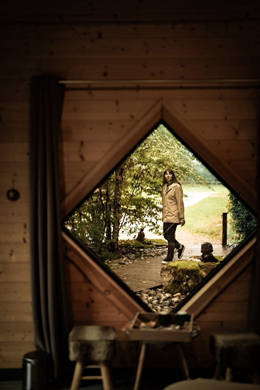 * Twee Pods tenslotte, kleine ronde houten hutten van 9 m2, van alle gemakken voorzien, completeren dit aanbod van ongewone accommodatie voor wandelaars en bezoekers.