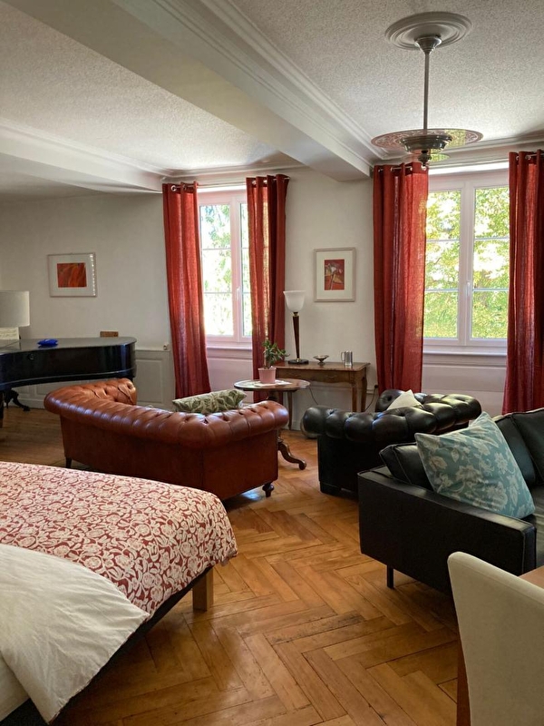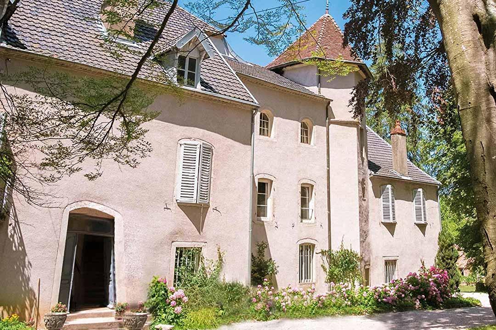 Dit 18e eeuwse landhuis met park en bijgebouwen ligt in het centrum van dit mooie, rustige dorp in het noorden van de Jura, op de grens met Bourgondië. Het hoofdgebouw biedt 2 suites en een slaapkamer die u terug in de tijd brengen. Twee gîtes bevinden zich in de tuin met zijn eeuwenoude bomen, een boomgaard, een riviertje dat het landgoed doorkruist en een 19e eeuwse vijver, waarin de overblijfselen van een Romeinse "villa" zijn verborgen. Deze "villa" gaf zijn naam aan het oude wijndorp aan de voet van de Mont Guérin. Tijdens een wandeling kunt u nog de resten ontdekken van de Kelten die er al in 3500 v. Chr. woonden. Iets verderop, op de fiets, kunt u de vallei van de Ognon ontdekken, Pesmes - een van de mooiste dorpen van Frankrijk. Of u rijdt liever naar de historische steden Dole, Dijon, Beaune, Besançon en de wijngaarden van Bourgondië en de Jura, die op drie kwartier afstand liggen. Terug op het landgoed laten de gastheren u graag deze uitzonderlijke wijnen zien, ook via een bezoek aan de gewelfde kelder.