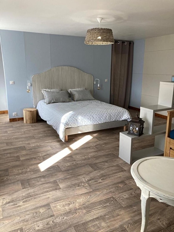 Via een aparte ingang bieden wij vier slaapkamers: de Bohème kamer, gelegen op de begane grond, heeft een bed van 160*200 met een halfopen badkamer en aparte WC. Op de eerste verdieping, drie slaapkamers: de Châtaignier kamer, met zijn wijntinten, heeft een bed van 160*200 en een halfopen doucheruimte en aparte WC. De kamer Nature, met twee bedden van 90*200, biedt een kleine ontspanningsruimte en een doucheruimte in Italiaanse stijl waar hout en metaal harmonieus samengaan, en een apart toilet. De kamer Bugia, tenslotte, biedt plaats aan 5 personen (1 bed van 160 cm, 3 eenpersoonsbedden) met een eigen badkamer, douche en apart toilet. Het ontbijt en de table d'hôtes, met streekproducten, worden bij mooi weer op het terras genuttigd en in de mooie woonkamer van de eigenaars die het oude glooiende platform van de schuur onthult. Een lounge en een kantoorruimte zijn beschikbaar. Het verwarmde zwembad (4*8 m en 1,5 m diep) is beschikbaar van april tot eind september. Veel activiteiten in de buurt van de gastenkamers: wateractiviteiten met de meren, watervallen en de Rhône, wandelen, fietsen (fietscircuit op 2 km en de ViaRhôna op 5 km). Voor de sportievelingen: De Grand Colombier ligt in het zuiden van het Jura massief en is het hoogste punt van de Bugey (1531 m). De kamers zijn ideaal gelegen in een rustige omgeving, ideaal om uit te rusten en de vele kleine typische dorpjes te bewonderen met hun stenen huizen, ovens, wasplaatsen en fonteinen. VRP alleen in de Châtaignier kamer - van maandag tot donderdag inbegrepen (behalve voorjaars-/zomervakantie): voor één persoon: 70 € per nacht en/of 90 € voor halfpension. Table d'hôtes en mandmaaltijden alleen op reservering.