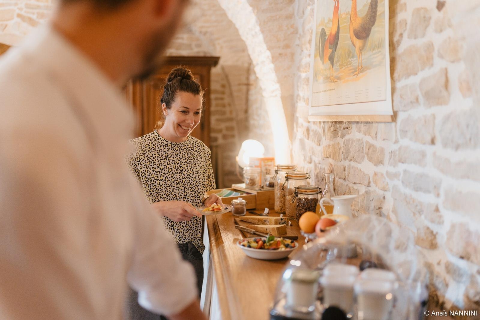Het ontbijt wordt geserveerd in een prachtige gewelfde ruimte, met de nadruk op biologische en lokale producten: warme dranken, vruchtensappen, gebak, kaas, vleeswaren, eieren .... Geniet van de rust op het schaduwrijke terras, wandel door het bosrijke park om de dieren te ontmoeten (ezels, geiten, eenden, kippen), speel jeu de boules en zoek verkoeling in het zwembad.