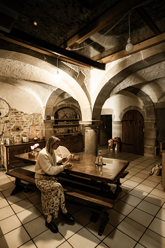 De regionale table d'Hôtes is beschikbaar op vrijdag- en zaterdagavond op afspraak (behalve in juli en augustus), en is beperkt tot zes personen. Vanaf 19.30 uur wordt in de kelder een aperitief geserveerd met een proeverij van Jurawijnen. Als u een bepaalde wijn lekker vindt, kunt u deze voor uzelf kopen.