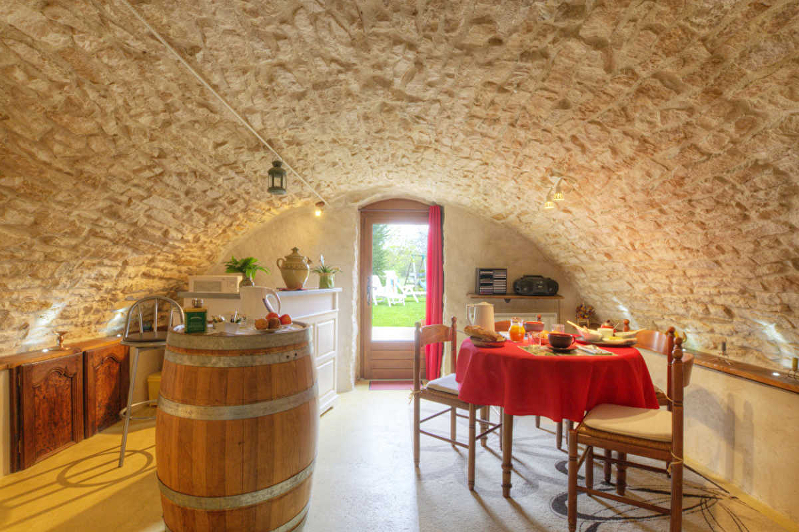 Het ontbijt kan worden geserveerd in de oude gewelfde kelder of buiten in de zomer.