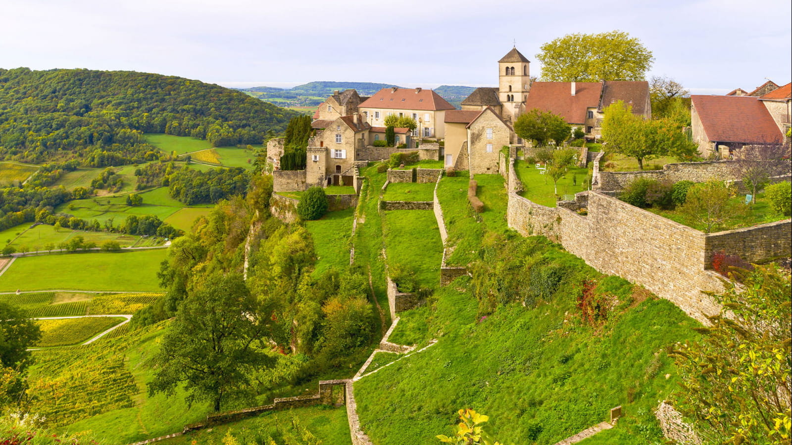 - Château-Chalon, een dorp op een rotspunt, met uitzicht op een uniek wijngebied