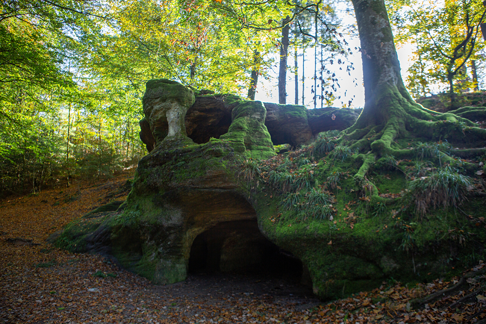 Als je het dorp Moissey verlaat, in de richting van Amange, ga je het bos van het Serre-massief in. Op de top van de Serre sla je linksaf langs de oude "Chemin de la Poste". Ga een paar honderd meter verder. Een klein pad aan de linkerkant leidt naar de voet van een steile rots waarin twee uitgravingen uitkomen.