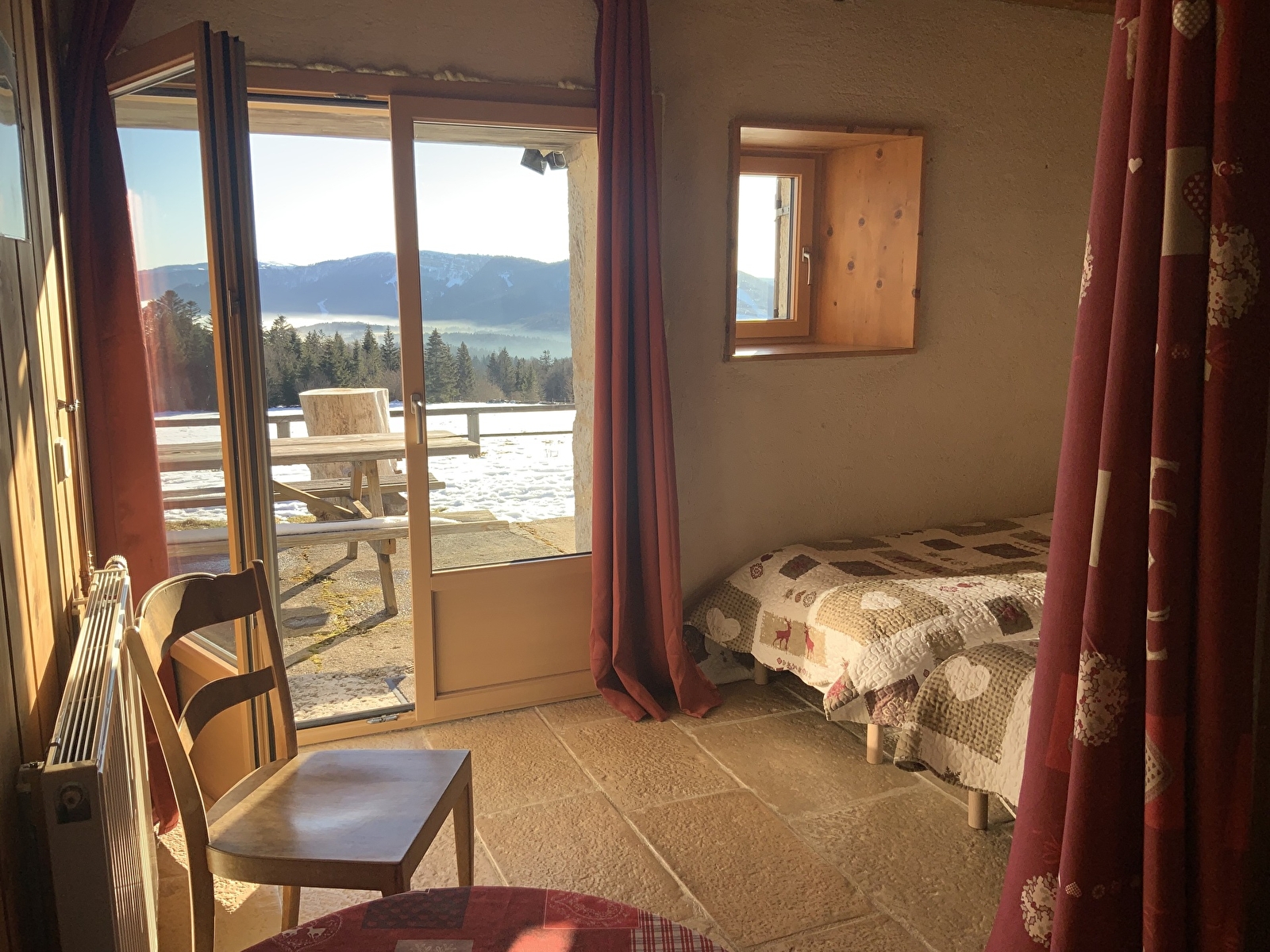 Schitterend uitzicht op de toppen van de Jura, de Alpen en de Mont Blanc. Zenitude en verandering van omgeving gegarandeerd voor gezinnen, clubs, opleidingen, seminars...