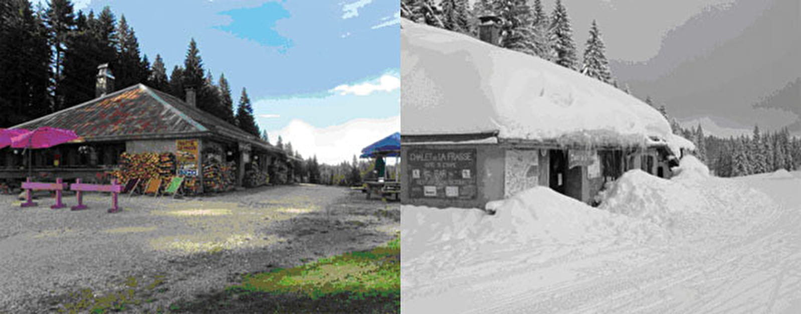Het Chalet de la Frasse, ideaal gelegen in het bos van Massacre op de Grande Traversée du Jura, opent zijn deuren elke dag tijdens de winter/zomer periode.