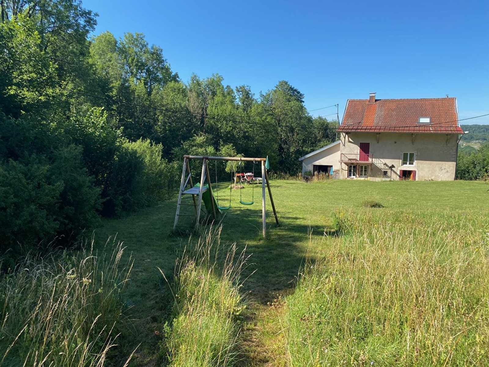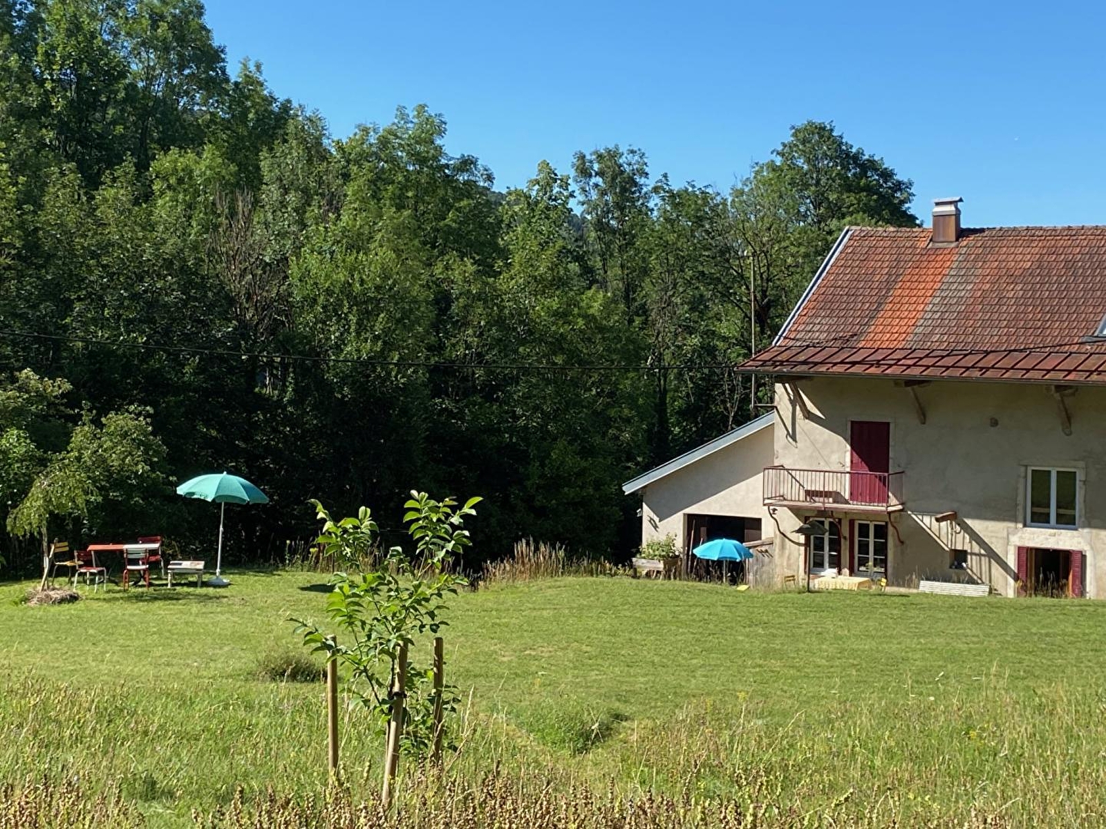 Mooi, smaakvol ingericht, vrijstaand Jurahuis uit 1889, met uitzicht op de vallei. Het is omgeven door een uitzonderlijke natuurlijke omgeving die jong en oud in verrukking zal brengen. In het huis vind je een hal, een volledig uitgeruste keuken, een eetkamer, een zithoek met open haard en veel gezelschapsspellen. Er is ook een grote badkamer (met bad) en een apart toilet. Boven is een grote mezzanine met tafelvoetbal en boekenkast, 2 slaapkamers met elk 1 tweepersoonsbed en een 3e slaapkamer met 3 eenpersoonsbedden, een doucheruimte met inloopdouche, dubbele wastafel en WC. Op de 2e verdieping vind je een 4e slaapkamer met 3 eenpersoonsbedden en een 5e slaapkamer met 1 tweepersoonsbed. Er is geen televisie in de gîte, want de verschillende leefruimtes in het huis en vooral de buitenomgeving, midden in de natuur en op een Gallo-Romeinse site, nodigen uit tot opmerkelijke momenten met familie en vrienden. Aan de gîte grenst een groot, bosrijk, niet omheind terrein met tuinmeubels, een schommel, een glijbaan en een barbecue. Bovendien ligt de gîte aan de oevers van de rivier Héria, met zwemmen in de watervallen (kinderen onder ouderlijk toezicht). Internet met goede 4G-dekking voor alle verbindingen op eigen apparatuur en persoonlijk abonnement. Alle winkels op 4 km.