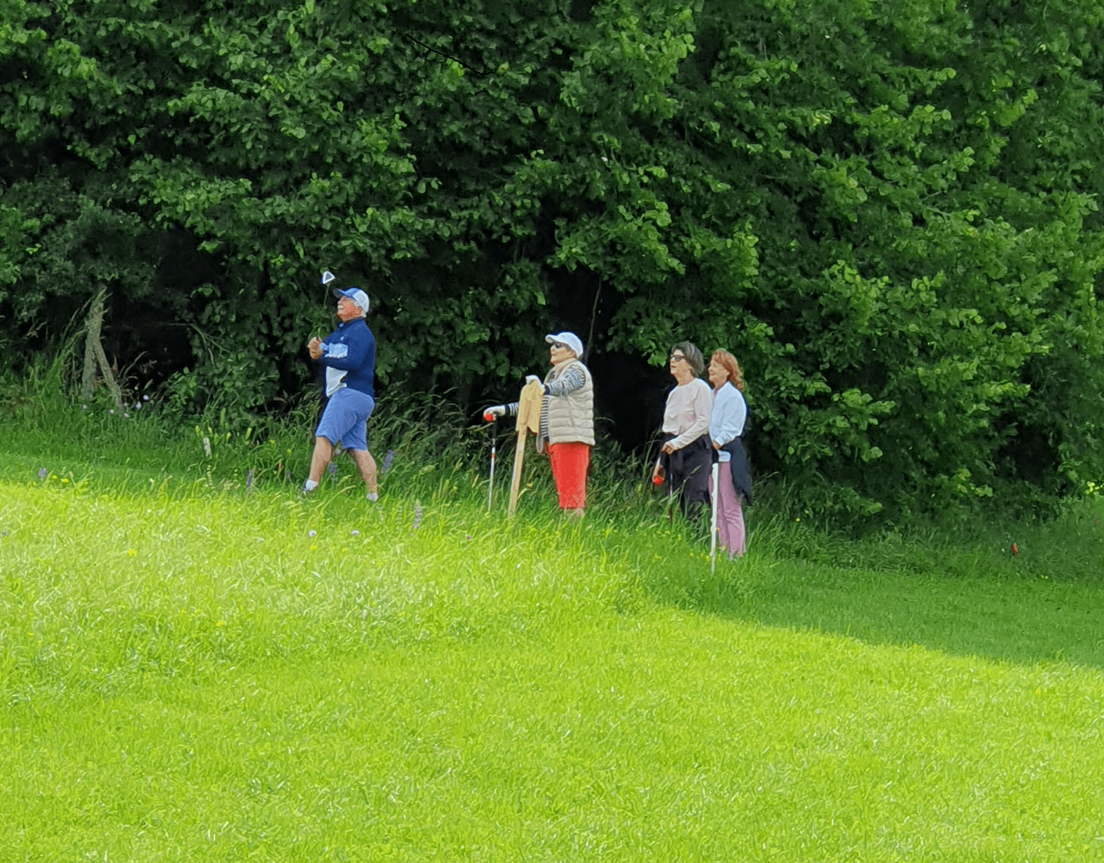 Voor swin zijn de startlijnen op de teeing grounds gemarkeerd door witte, blauwe en rode keien. De afstand tot de holes wordt aangegeven op het bord met het hole-nummer. Elke speler kiest zijn tee line op basis van zijn vaardigheid.