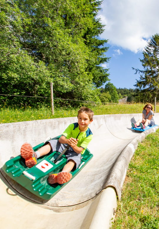 Sleeën... in de zomer: het kan in het Juragebergte! Op naar de skioorden Métabief en Monts-Jura voor volop sensatie op de zomersleebanen. Je kunt ook een rustig ritje maken om te genieten van het omringende landschap.