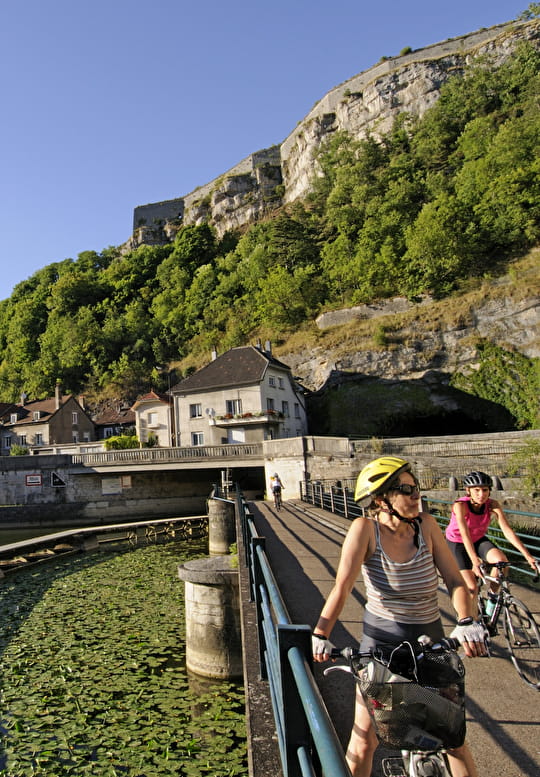 Langs rivier de Doubs is het vlakke en veilige parcours ideaal voor gezinnen met kleine kinderen. Onderweg profiteer je van de boten die door de sluizen varen, de hoge rotsen en de groene weilanden of bossen. We raden je aan om in de steden te stoppen: ontdek de kapittelkerk van Dole, bezoek de citadel van Besançon, wandel in het centrum van Montbéliard…