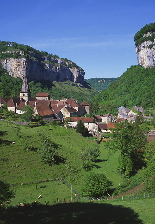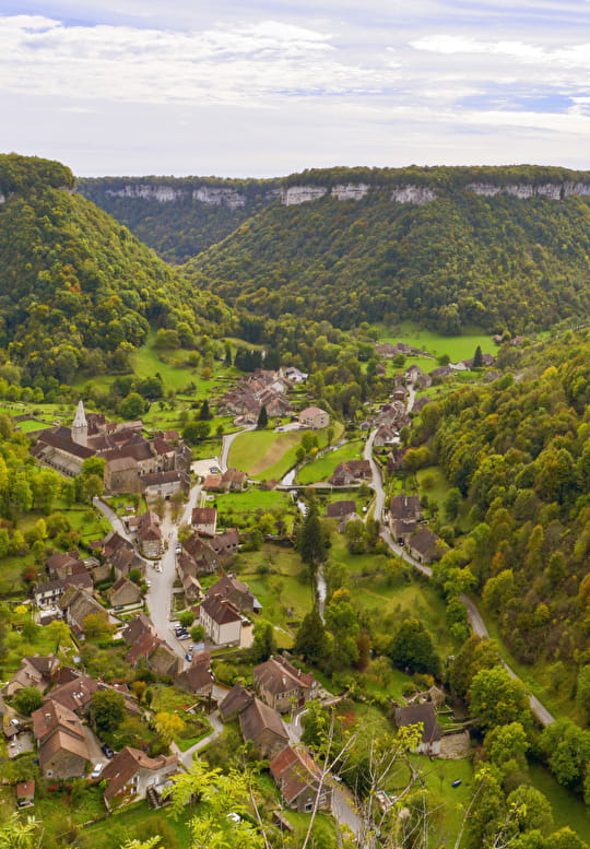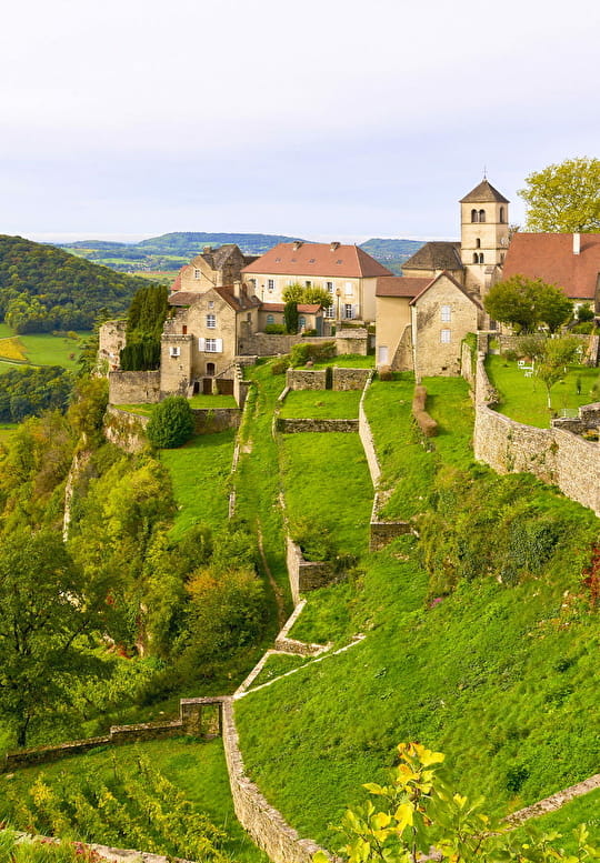 - Château-Châlon en Baume-les Messieurs, twee dorpen op de lijst van "Mooiste Dorpen van Frankrijk". Beide plaatsjes liggen op een rotspunt tussen wijngaarden en reculées;