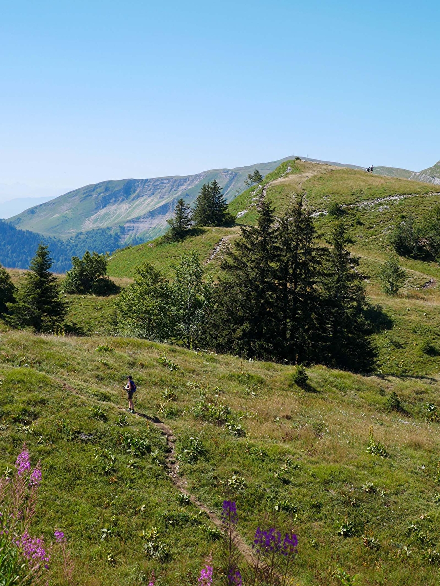Trek bij aankomst op de Col de la Faucille je wandel- of sneeuwschoenwandelschoenen maar aan, want je bent nog niet klaar met klimmen! Op naar de Petit Mont Rond, te voet of met de telecombi skilift van Mont-Rond, vooral als je met kleine kinderen bent.