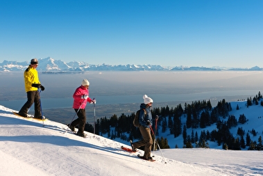 Maak je eenmaal aangekomen bij de top klaar om je ogen uit te kijken: van hieruit heb je een adembenemend 360°-uitzicht op Frankrijk en Zwitserland. In Frankrijk: het dorp Les Rousses, de Vallée de la Valserine en het Juragebergte; in Zwitserland: het meer van Genève met op de achtergrond de Alpen en de legendarische Mont-Blanc.