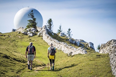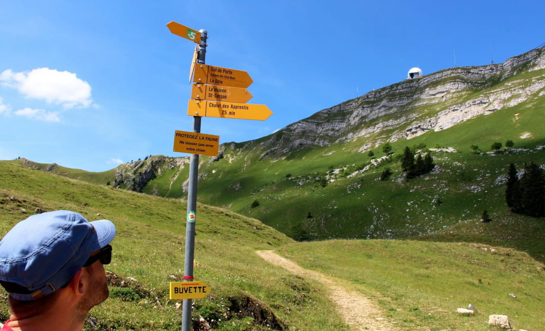 Je herkent de top van de Dôle meteen! En dat is ook niet zo moeilijk: het is niet alleen een van de hoogste bergtoppen van het Juragebergte (1677 meter!). De top is vooral herkenbaar aan de witte bol met radar en weerstation.