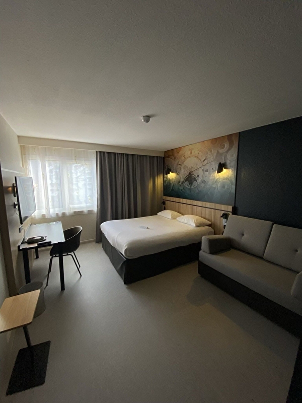 Zeer rustig gelegen hotel met gemakkelijke toegang, gratis privéparkeerplaats, dicht bij het SNCF-treinstation. Busverbinding naar het stadscentrum op slechts 500 m afstand. Restaurant Au fil des Saisons, groot schaduwrijk terras met zwembad. Onze gastvrije, moderne en warme kamers met een comfortabel bed en een functionele badkamer bieden alles wat u nodig hebt voor een aangenaam verblijf, met flatscreentelevisie en TNT-boeket. De kamers hebben airconditioning, een haardroger en een dienblad.
