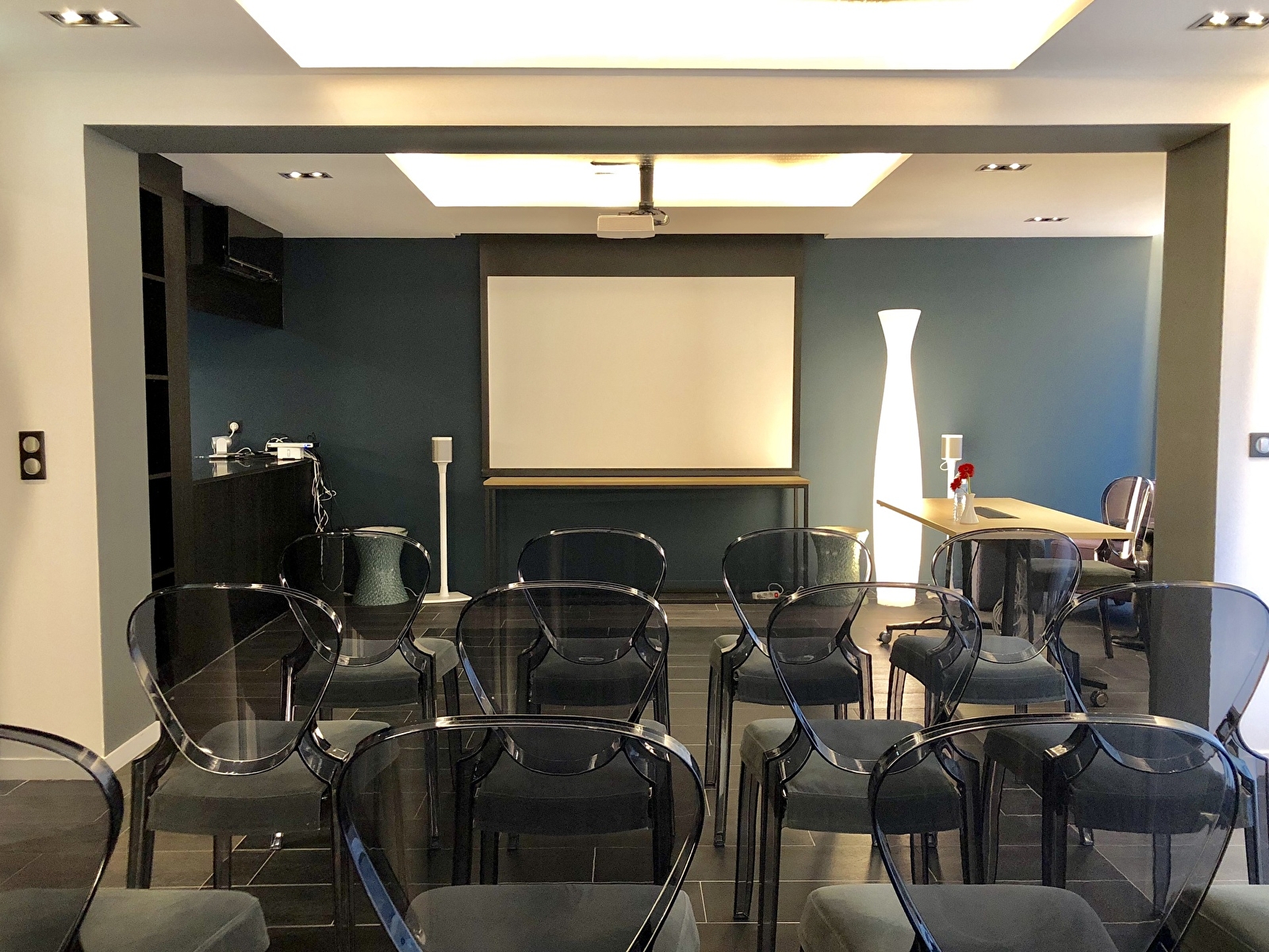 Wij kunnen u een zaal van 45 m² (met een terras van 15 m²) voor 40 personen ter beschikking stellen.