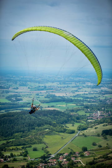 Op slechts 3 km buiten La Grange du Pin moét je stoppen bij restaurant Voyages des Sens. Je kunt ons later bedanken voor de goeie tip! Sluit je weekend af met een luchtdoop. De Mont Myon is een haast legendarische naam in de streek. Deze berg van 663 m is DE spot voor paragliding in de Revermont. Je krijgt er een 360°-panorama en een schitterend uitzicht op de vlakte van Bresse.