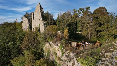 Vertrek voor een wandeltocht van 11 km en 180 meter niveauverschil (vertrek vanuit Camping du Surchauffant)! Het parcours loopt via bossen, middeleeuwse ruïnes en rotsen met een fantastisch uitzicht.