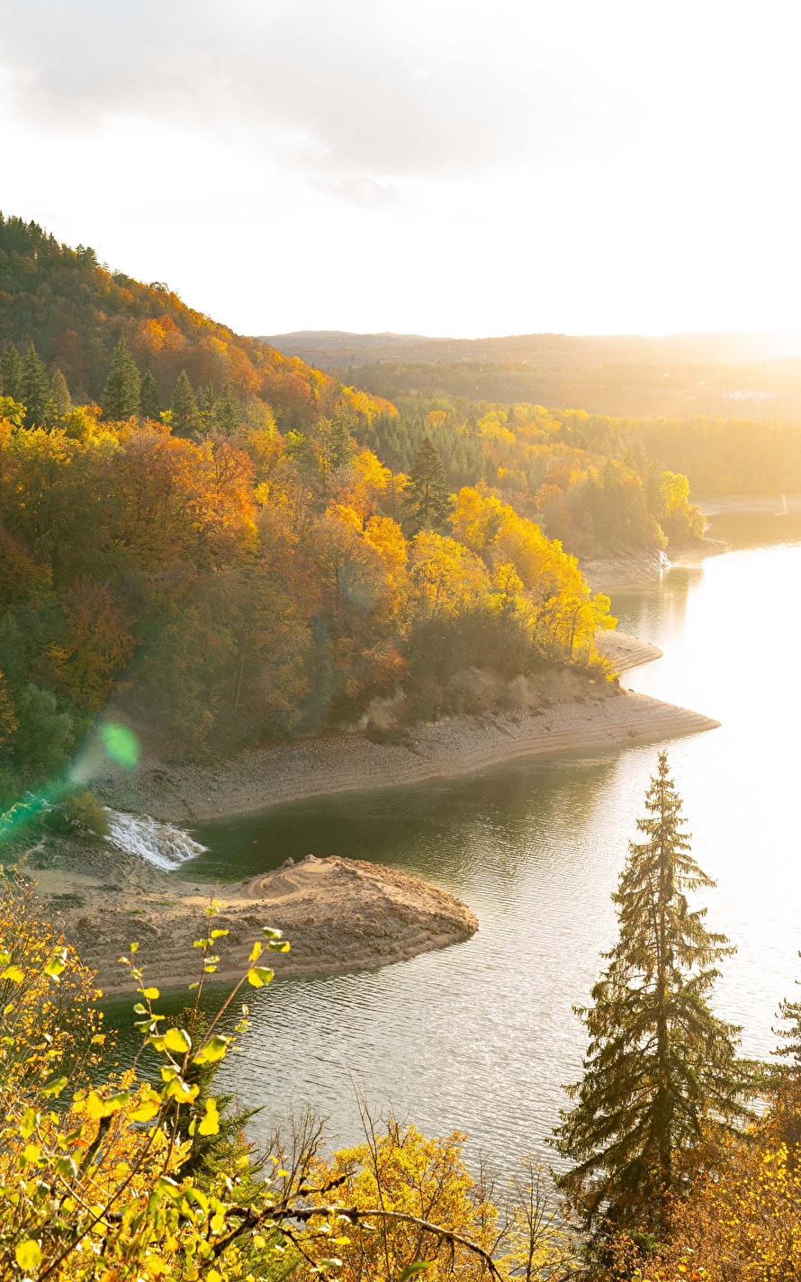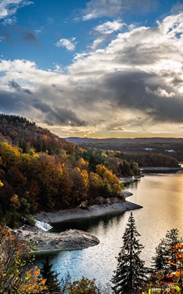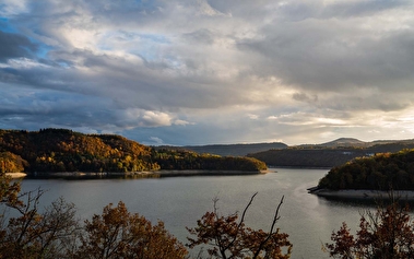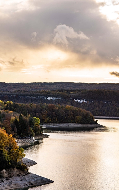 Van bovenaf kijk je uit over het enorme Lac de Vouglans, in een decor van bossen en herfstkleuren. Een betoverend schouwspel!