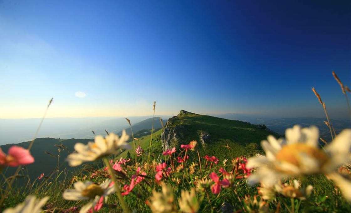 Helemaal boven (je kunt hier ook eenvoudig met de auto komen) bewonder je het vrije uitzicht op de Alpen, de Mont Blanc en de meren van Le Bourget, van Annecy, van Genève, de Rhône en de Bugey ... Onvergetelijk!