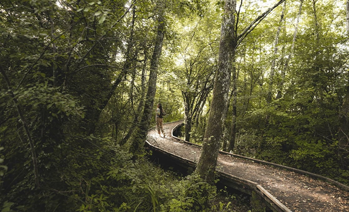 Zet je ogen en oren hier wijd open! Luister naar het gekwaak van de kikkers, kijk naar de roofvogels die op zoek zijn naar adders, de libelles en trekvogels die in zwermen opvliegen, de sporen van bevers …