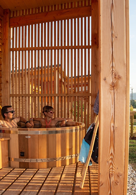 Comfortabel geïnstalleerd in je milieuvriendelijke hut-met-spa gaan alle registers open: romantische zonsondergang in een Noords bad, een drankje en een plankje met lokale boerderijproducten, intiem diner met een vrij uitzicht, ontspanning met een massage (op reservering) ... Haal diep adem en geniet!