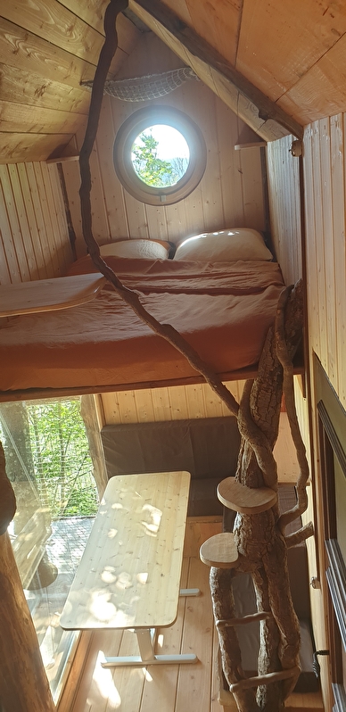 - 1 tweepersoonsbed op de mezzanine (toegang via een verticale ladder)