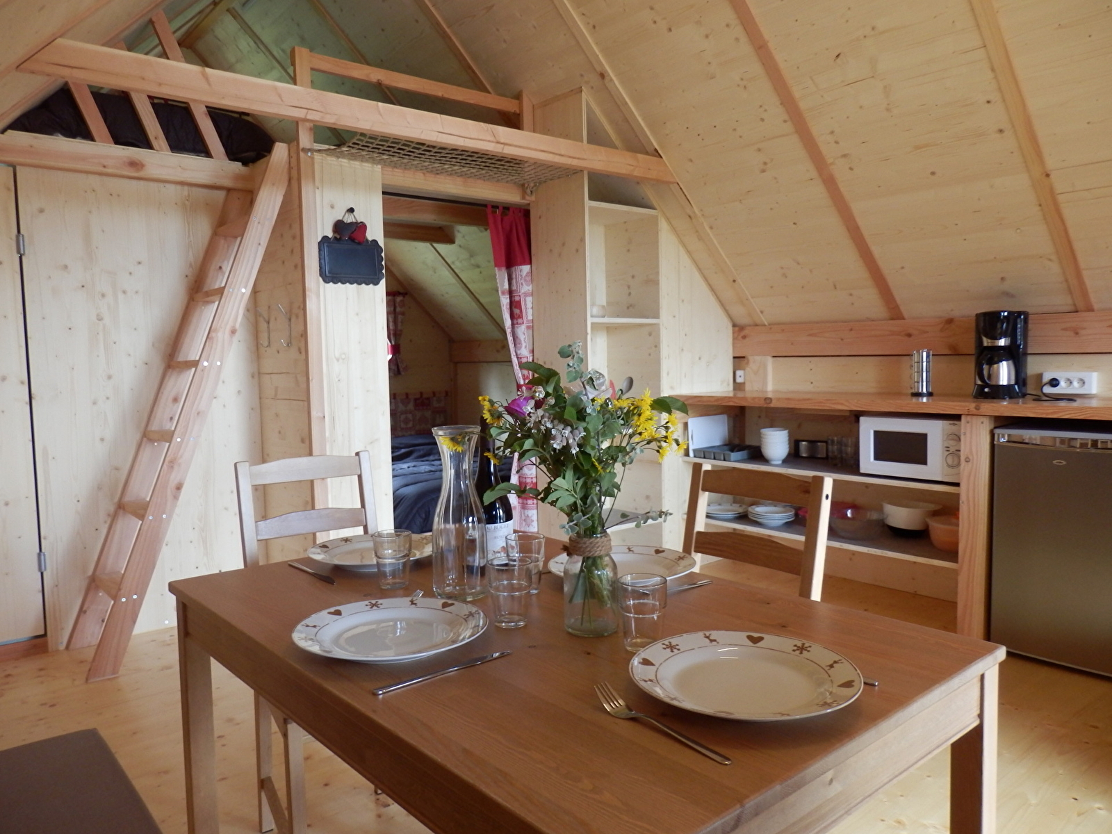 Volledig uitgerust voor 4 personen (servies, koelkast, inductiekookplaat, koffiezetapparaat, magnetron ...), een slaapkamer met een tweepersoonsbed en een mezzanine met 2 eenpersoonsbedden: kinderen zullen het klimmen op de molenaar ladder om naar hun bedden, een keuken / eethoek, douche / toilet ruimte en een prachtig overdekt terras, alles in een bijzonder warme sfeer