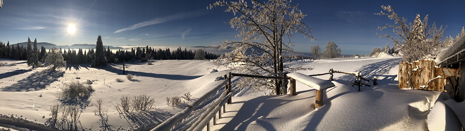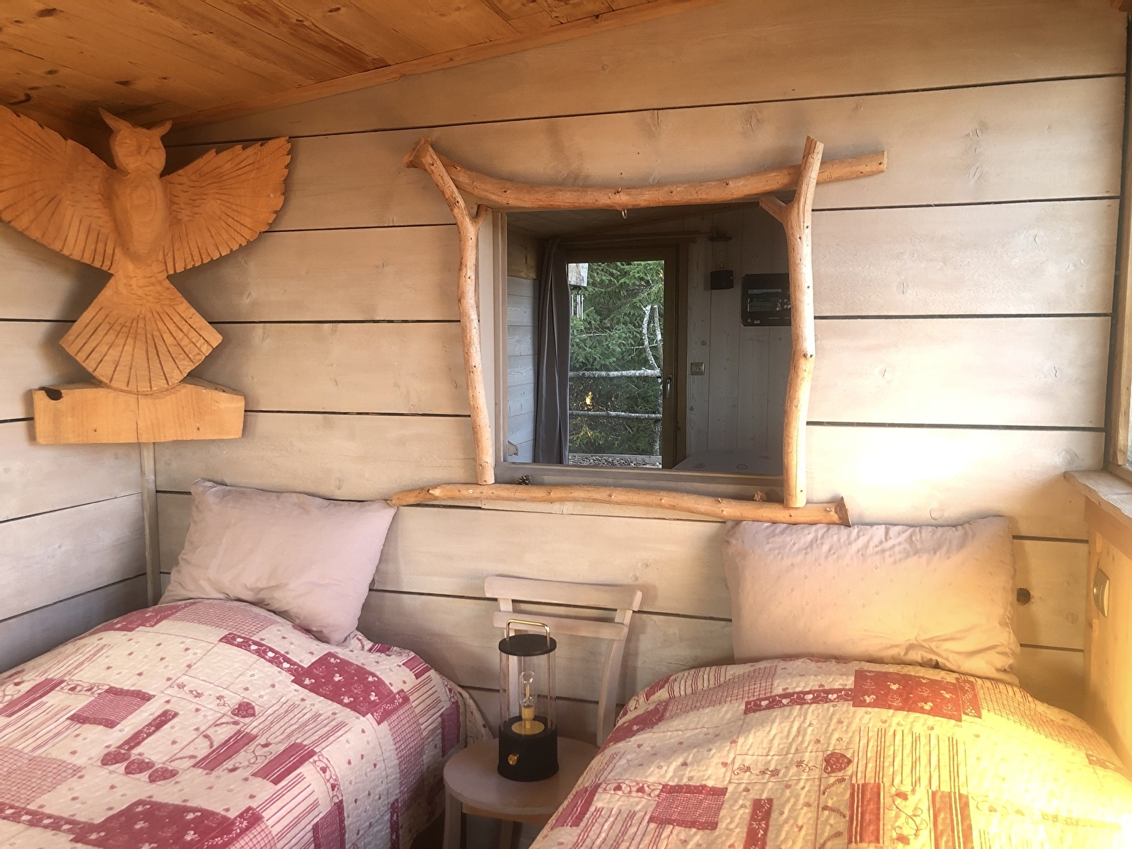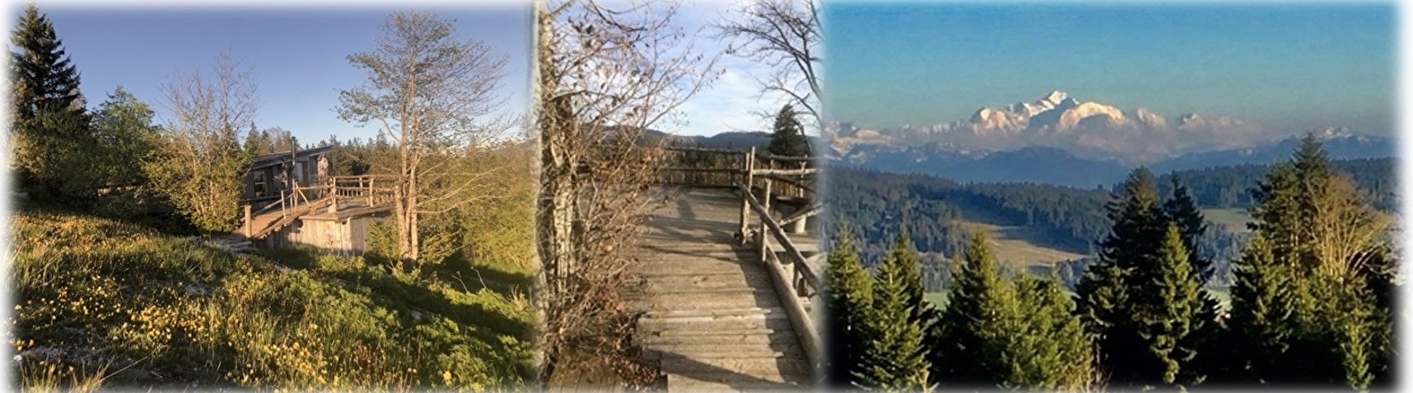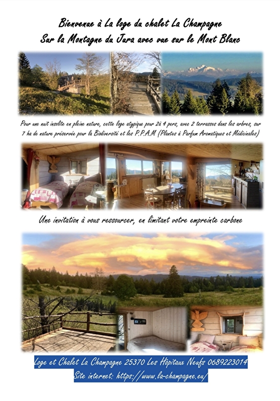 Hoog in de bergen van de Frans-Zwitserse Jura, hoog tussen de bomen op het terrein van het bergchalet La Champagne, nodigt de houten lodge je uit om nieuwe energie op te doen en tegelijkertijd je ecologische voetafdruk te beperken in een unieke omgeving op 7 hectare natuurgebied dat bewaard is gebleven voor biodiversiteit en P.P.A.M. (Plantes à Parfum Aromatiques et Médicinales)Schitterend uitzicht op de Mont Blanc, Mont d'Or, Mont Tendre en Suchet vanaf de 2 terrassen in de bomen..... Zenitude en een verandering van omgeving gegarandeerd! voor 2 tot 4 personen, self-catering met alle comfort.