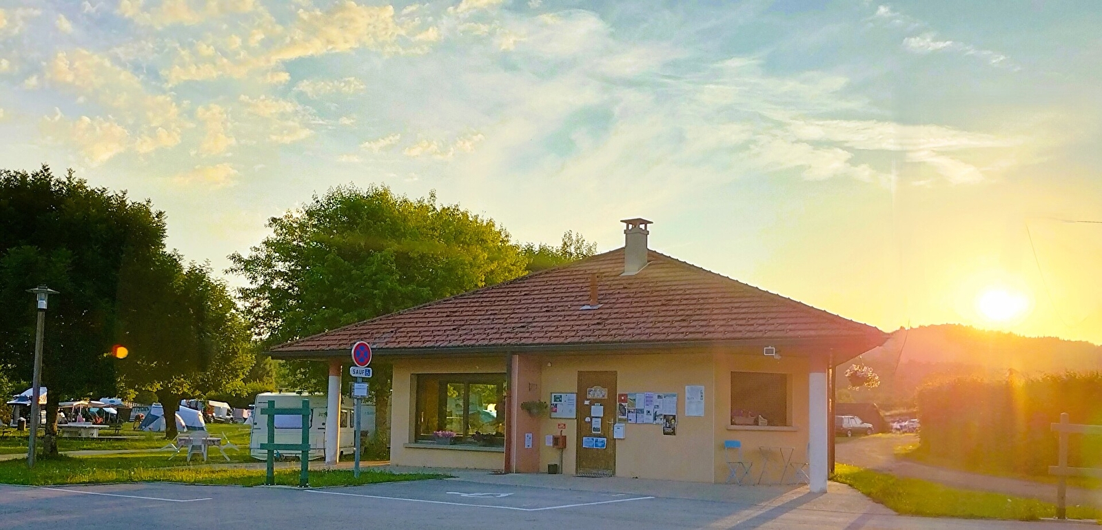 Camping grenzend aan het zwembad, de tennisbaan en de visvijver.