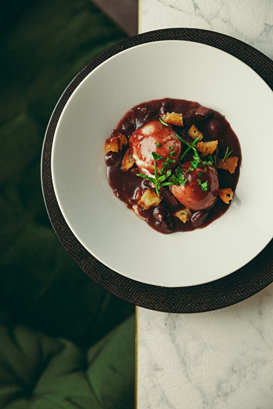 kip, quenelles van snoek BOB, morieljesrisotto en gele wijn