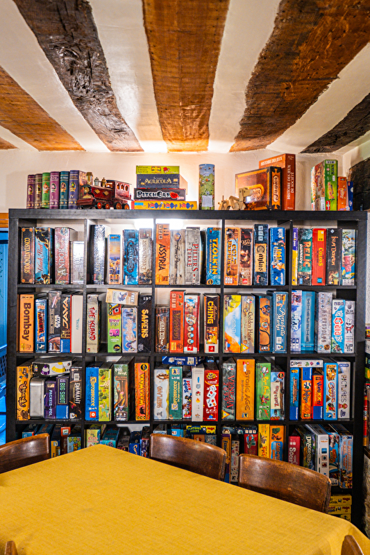 Toen we in de Jura aankwamen, zette La Valis'à Jeux zijn bagage neer in de herbergkamer. Wat een geluk! Bij je bezoek heb je toegang tot een spelotheek met meer dan 500 gezelschapsspellen.