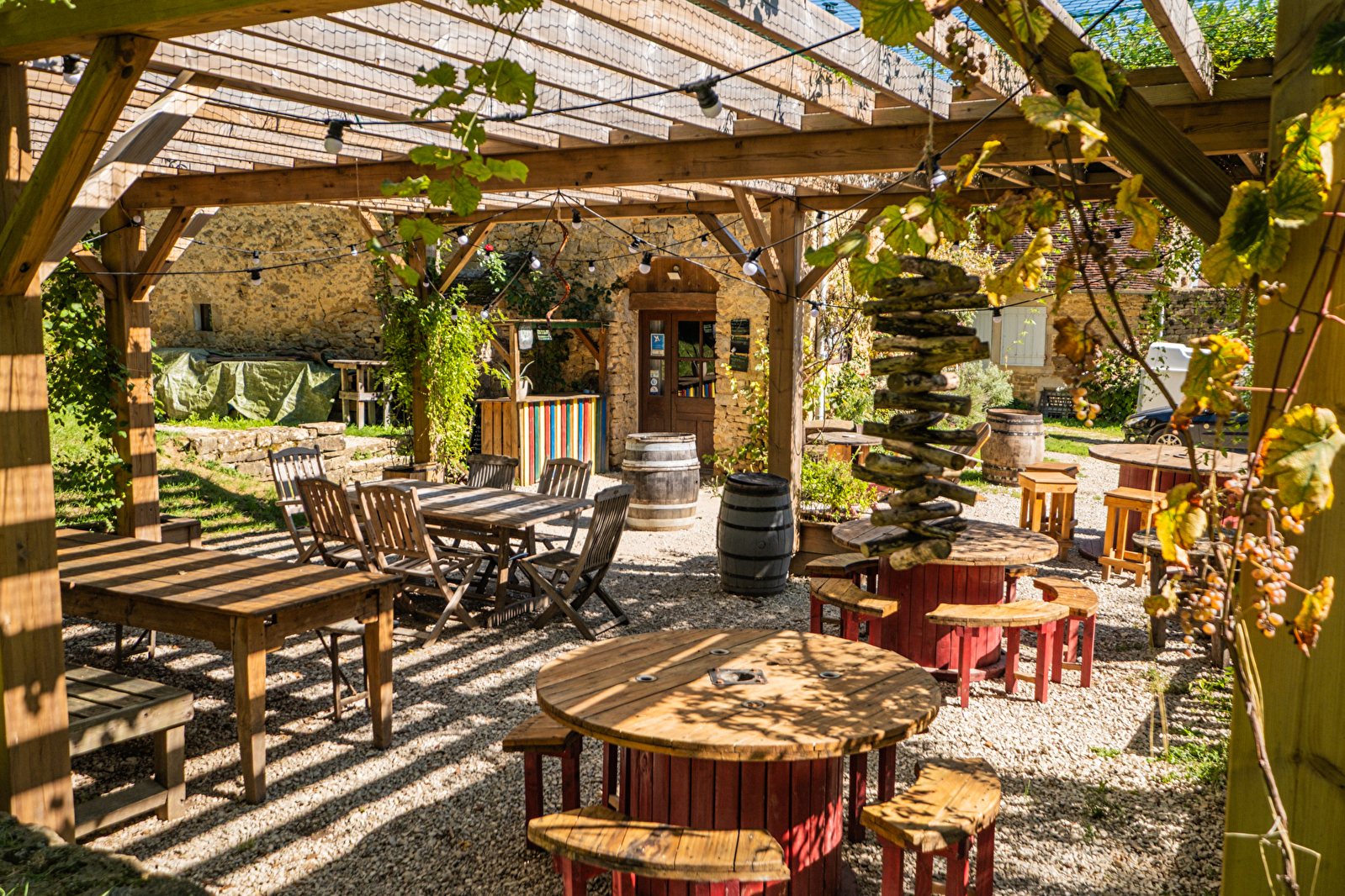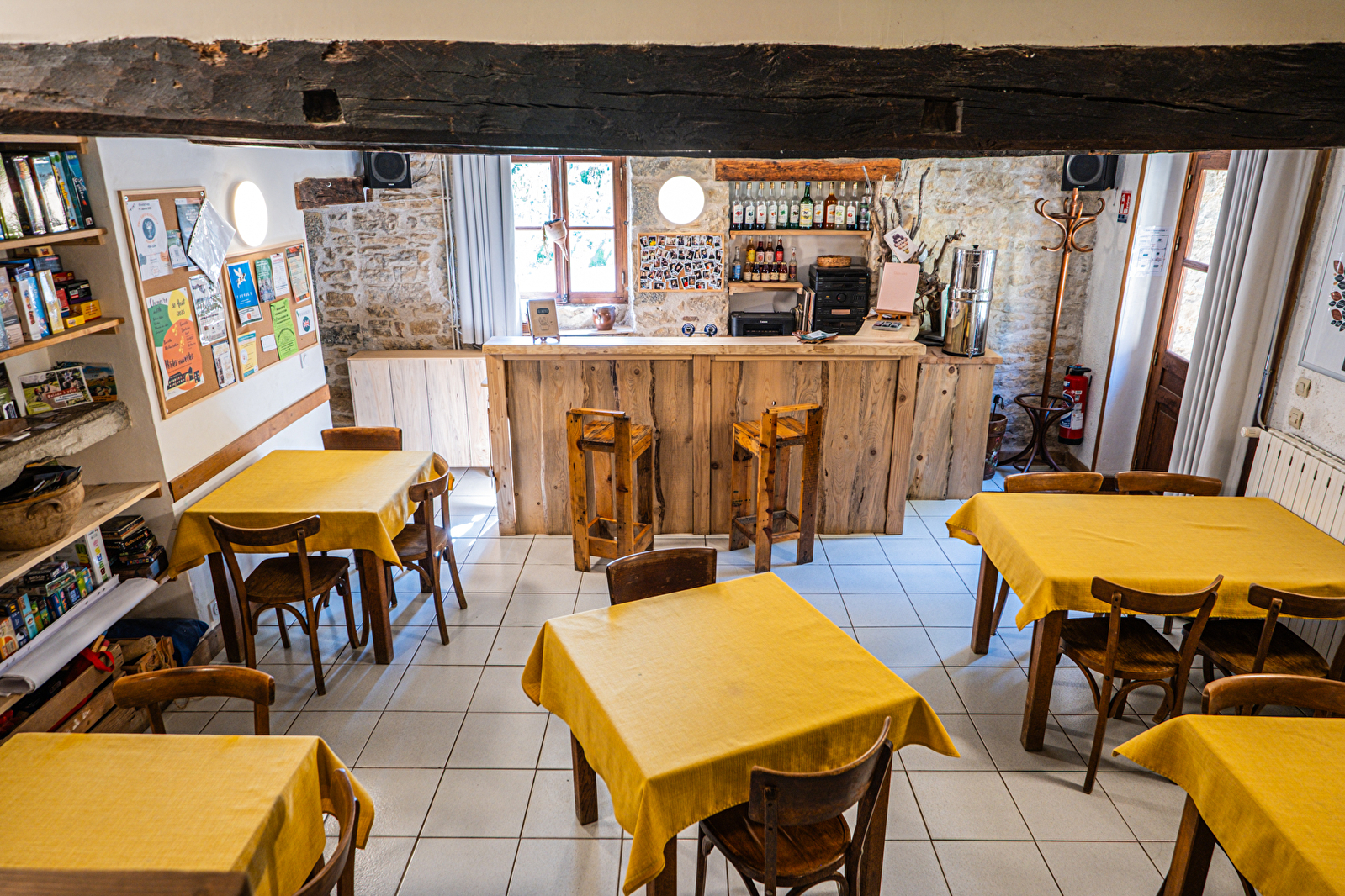 De eetkamer van 70 m2 met open haard, balkenplafond en natuursteenwerk biedt plaats aan maximaal 40 gasten. Hier vind je ook een spelletjesbibliotheek met meer dan 500 bordspellen.